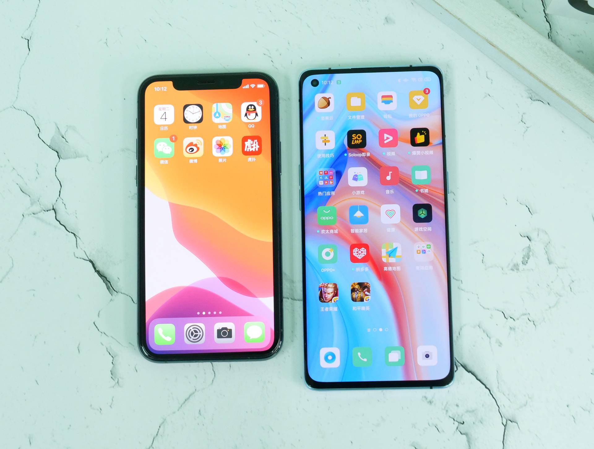 (左:iPhone 11 Pro;右:OPPO Reno4 Pro)