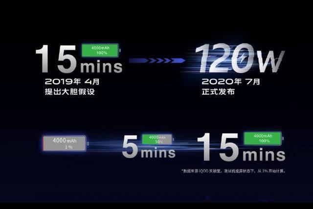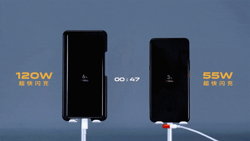 目前手机快充几十瓦功率很常见,55W超快闪充的iQOO 3,充满一部手机只需47分钟,大大提高了手机续航方面的使用体验。而关于快充的研发仍未停止,iQOO推出最新的FlashCharge超快闪充技术已经达到了120W,而搭载该项技术的新机也将于8月份量产面市。