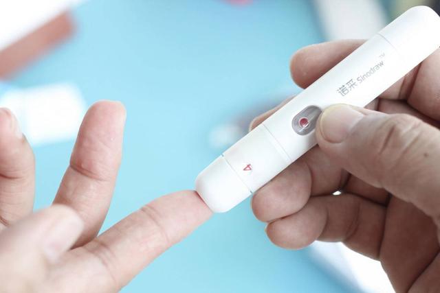 将指尖血珠对准试纸的虹吸口,试纸会将血样自动吸入,很小的一滴血即可,而且还要注意不出血不要硬挤,以避免皮下组织液混入血样影响检测结果的准确性。