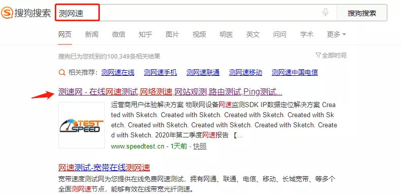 随便找一个浏览器,在搜索页面输入关键词【测网速】,然后在搜索页面,直接点击排名第一的搜索结果即可。