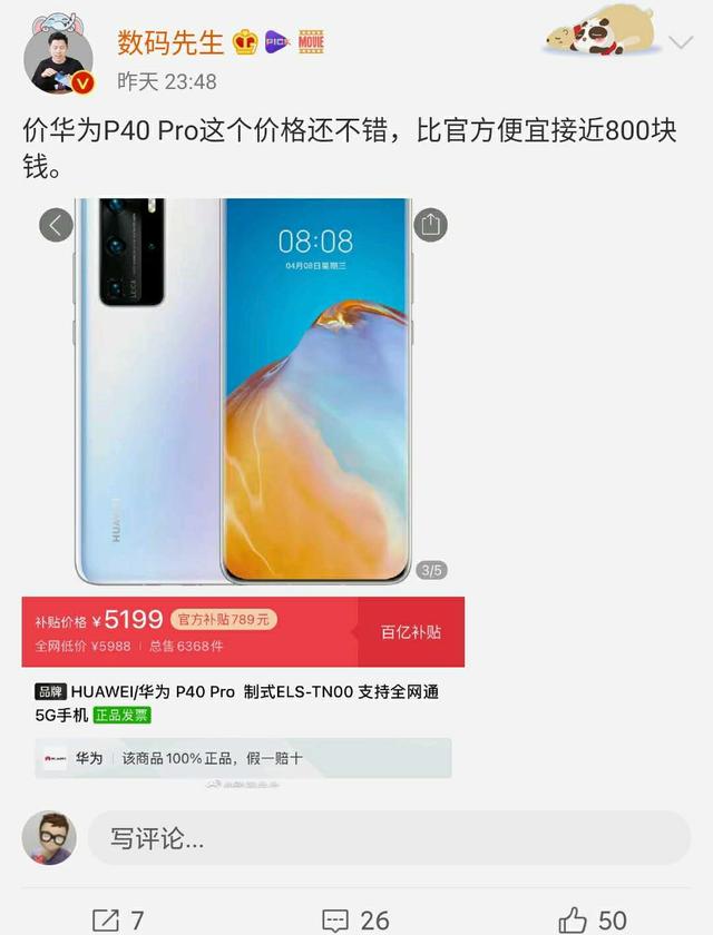 华为每年都发布两大高端旗舰机,包括Mate和P两大型号,上半年发布P系列,下半年发布Mate系列,现在已经进入下半年,华为Mate40系列即将发布了,上半年已经发布P40系列了,那么Mate40系列发布后,P40系列肯定是要降价让路的。现在Mate40也没有发布,华为P40在官方店也没有降价,不过有些商家百亿补贴下,华为P40 Pro这款手机已经大降789元了,这款手机国行版是在今年4月份发布的,目前仅过了4个月就大降789元了,8GB+128GB版发布价5988,第三方商家跌至5199元。
