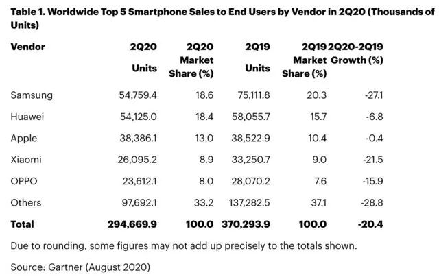 我们都知道,2020年开始全球各地受疫情影响, 实体经济都受到了巨大影响, 其中手机行业也在疫情期间遭遇前所未有的滑铁卢。据Gartner最新的数据,第二季度全球智能手机销量2.95亿部,同比下降了20.4%,尽管这一数字相比第一季度依旧略微好转,但情况依旧很不乐观。
