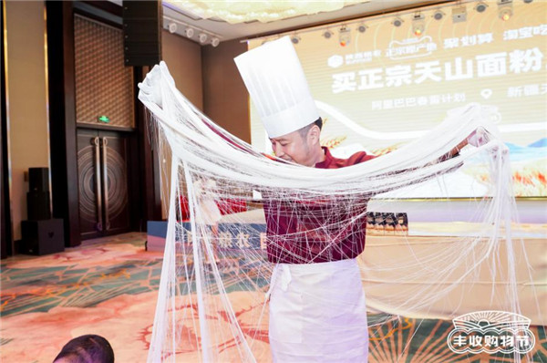 在授权仪式活动现场,当地的面点师傅还特别挑战了“天山面粉花式甩飞饼”,陕西省烹饪大师余院长则表演了“用天山面粉挑战拉面条”,这些精彩的表演活动直观展现了天山面粉筋道弹牙的特点,不少消费者都曾表示最喜欢天山面粉嚼起来的韧劲。