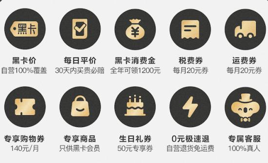 在此次升级前,考拉会员有17项权益,升级后被合并成10项。看似数量变少了,其实在质量端做了加法——筛除一些无感权益,在会员最有感的权益上提升质量。比如升级了黑卡价,并对自营商品100%覆盖,还推出黑卡消费金,专享商品,专属客服等,提升了黑卡会员的购物体验。并且,考拉内部还将会员满意度而非GMV作为最重要的KPI。让会员身份更“有感”。