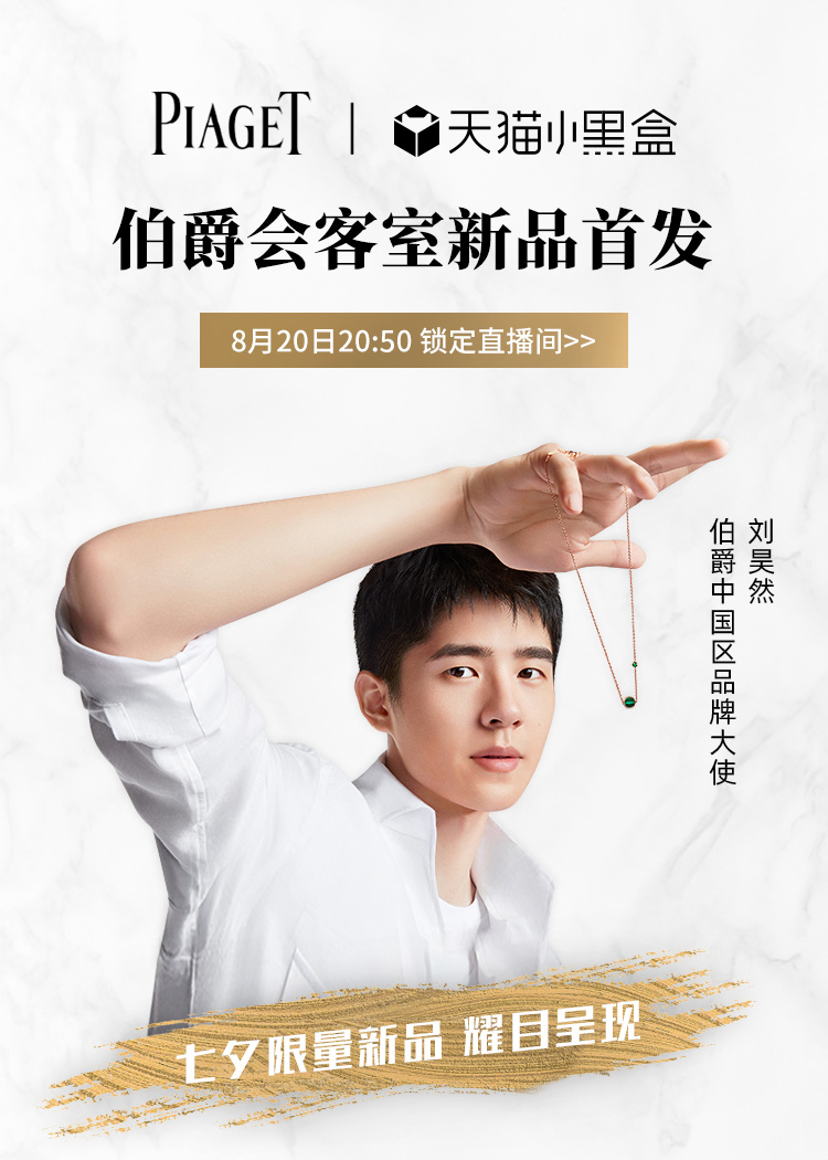 2020年8月20日,瑞士高级珠宝与腕表大师PIAGET伯爵与天猫小黑盒在上海举行发布会,宣布品牌官方天猫旗舰店迎来盛大开幕,并同步在天猫小黑盒平台独家发售七夕限量版项链。