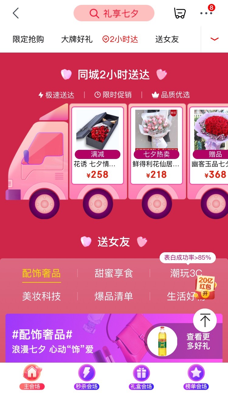 京东会场福利送不停,大牌礼盒低至5折,定制花束9.9元限量抢,想为女朋友送礼物就要抓紧了,很多高性价比礼品都是限量抢,手慢无!