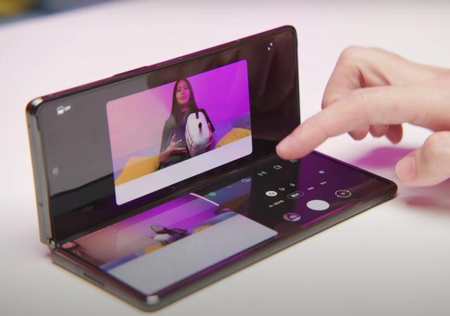 这款手机仍然保留了横向折叠设计,但屏幕升级比较大,外屏为6.2英寸,分辨率为2260*816,比例为25:9;展开后内部屏幕可达7.6英寸,分辨率为2208*1768,自适应刷新率为120Hz,内部镜头为挖孔设计。