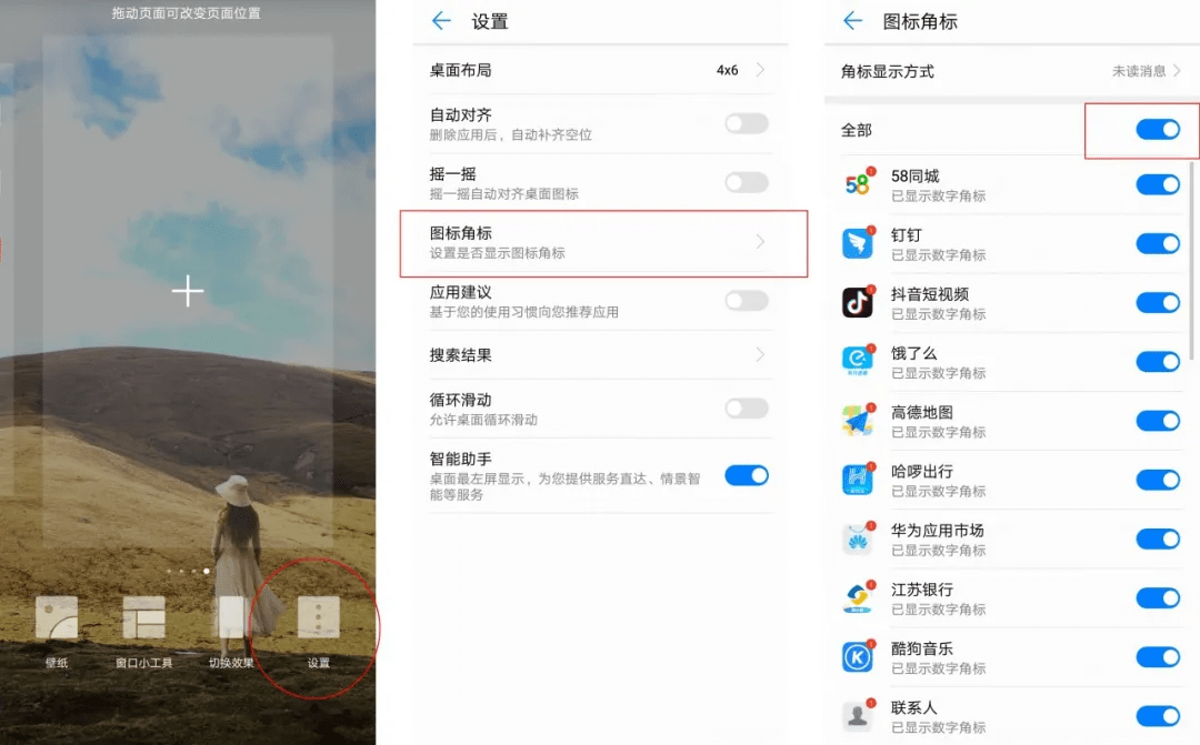 首先长按页面空白处,在弹出的页面中点击设置,然后再点击图标角标,最后点击全部就关闭了,可以根据自己的喜好来哦~闪修哥只留下了微信和钉钉