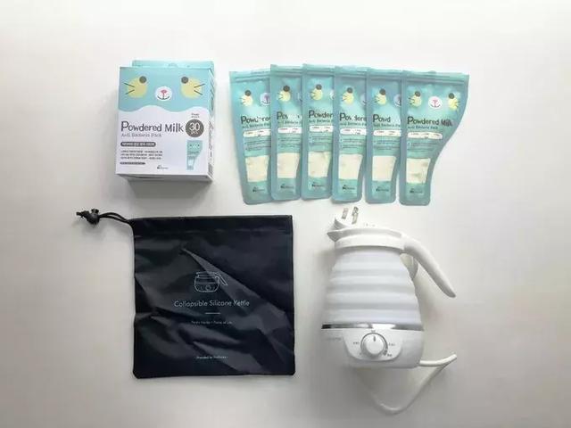 对于带还需要喝奶粉的宝宝出门,我强烈推荐这个奶粉储存袋,网上有很多在卖。我个人觉得非常方便好用,旅游之前,我先按照每顿的量进行包装,再多装几袋富余的。还有这个烧水壶也是很好的旅行神器,之前看过很多曝光的新闻说酒店的水壶不干净,不知道煮过什么东西,所以一般我和宝爸出去旅游都是喝瓶装水。但这次考虑要给宝宝冲奶粉,所以就买了一个这个便携热水壶,可以折叠,放在行李箱里携带很方便,有这方面需求的可以考虑入一个。