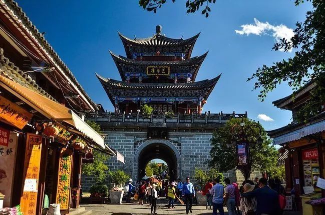 2、大理古城。拥有1200多年历史,古城中央是著名的五华楼。城内洋人街,五一路现在是古城里最繁华的地段,商铺、食肆、酒吧、咖啡馆,几乎都聚集在了这里,晚上可以再酒吧街狂欢。ps:号称中国民谣风向标的五一路,喜欢民谣的一定要去。