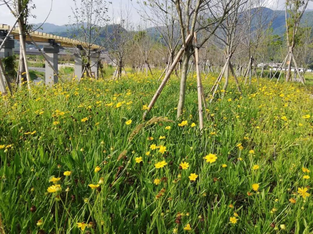 第四个色带—黄色带,观花乔木主要行道树麻楝、银叶金合欢,观花地被主要种植黄色系的大花金鸡菊、萱草、金丝桃、双夹槐等,走在这个区域,处处是丰收的景象,感受到欢快和希望。