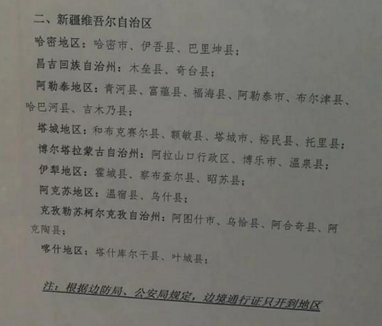 需要注意的是,边境地区只填写到地级市,不填写到地市以下的具体地名,因此关于新疆那些地级市需要办理边防证,你也应该有所了解: