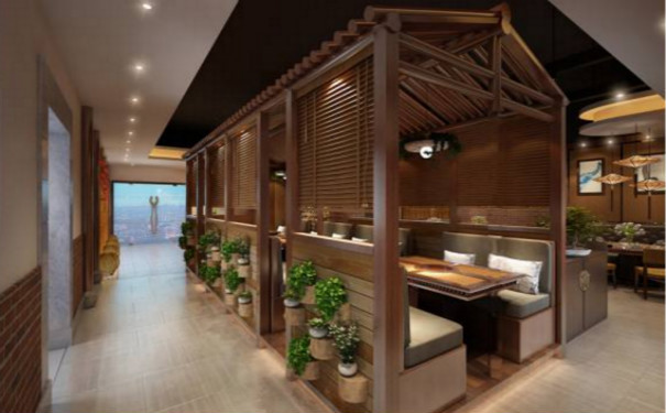 1、参照店铺面积的大小及品牌定位的高低,湘菜店铺入口和橱窗展示空间比例分配要恰当。不同业态的店铺有不同的入口设计,如通常快餐店设计入口及展示空间比例要求较大,咖啡馆设计则要求较小。大型商店餐饮店有多个入口,要合理有序的组织循环客流和疏导人群,小型饮品店设计往往没有多大的展示空间可用,故多采用无框玻璃,借助于入口来展示产品。