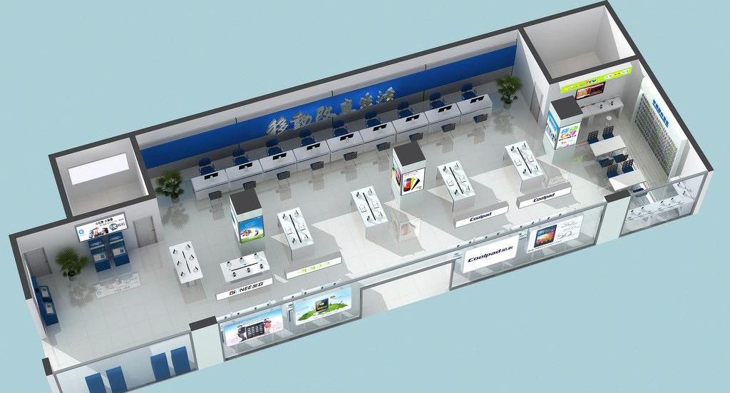 室内布局:手机店内的布局一定要科学合理,同时更要精致。如果说只是简单地两排站的话,会非常没有新意。手机店柜台的摆放,手机的摆放一定要特别,让新颖的布局和设计留住消费者的心,从而提升销售机会。