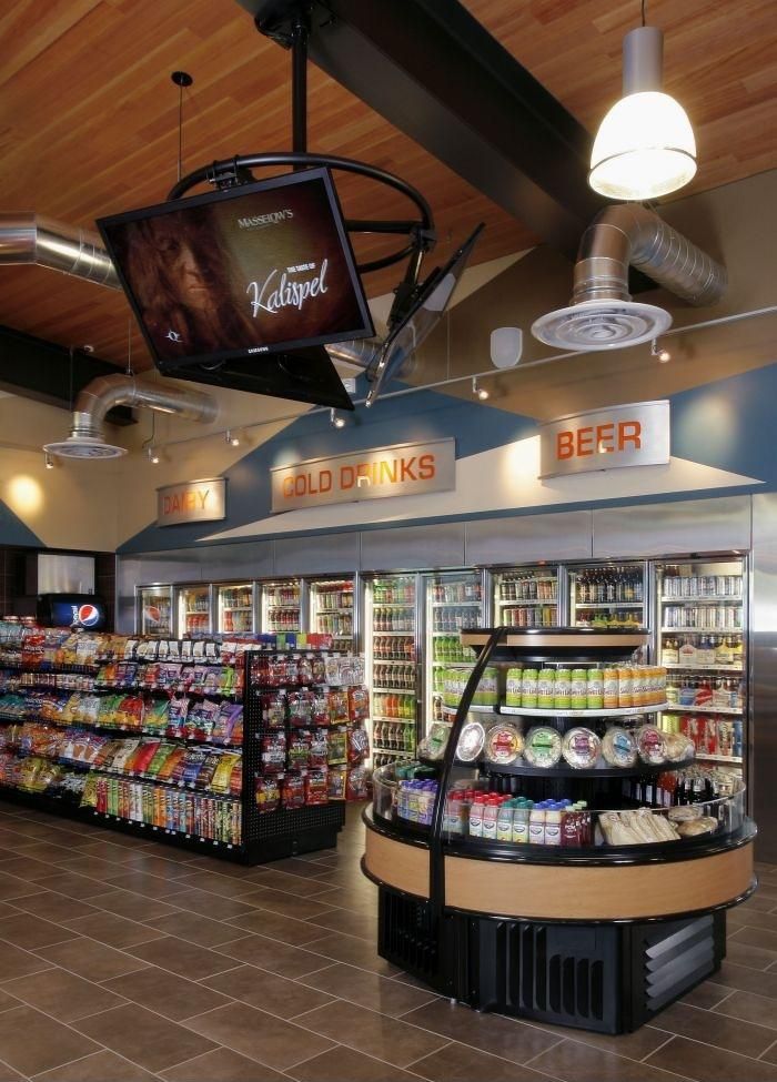 便利店的面积不算大,所以在出入口的设置上要尽可能的少,比如一至二个,这样也可以方便人员管理和防窃。同时,也不会因为太多的出入口而占用营业空间。一般而言,出入口设置在店铺门面的左侧,宽度为5米。苏州蓝狗装饰认为一般行人潜意识都是靠右走,这样入店和出店的人不会在入口产生堵塞。