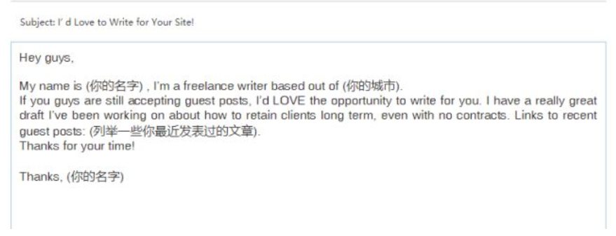 找到了资源之后,就是发邮件给网站申请发布文章了,邮件模板可以参考: