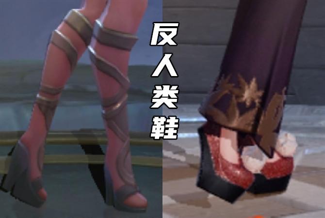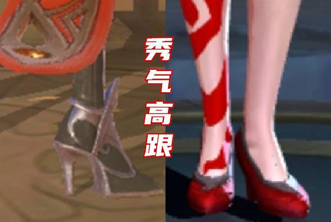 首先,是我认为有点反人类设计的鞋子,这要不是游戏,咱们生活中怕是也不会出现这样的鞋子。先看第一双,也不像是靴子呀,就是缠带的高跟鞋,防水台很厚,这样的鞋子真的走路不会掉吗?第二双就更厉害了,这样看很像还珠格格里面的那种鞋,防水台老厚了,然后脚跟那里几乎没什么支撑点,这样真的可以走路吗?这两位英雄,你有看出来是谁吗?