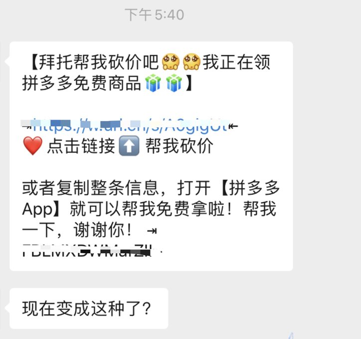 当然,复制口令的用户体验自然比不上直接的微信链接,但是相对于这部分用户群的“砍价”需求和充足的日常时间,“复制”这一步能产生多少具体的影响就需要再行斟酌了。