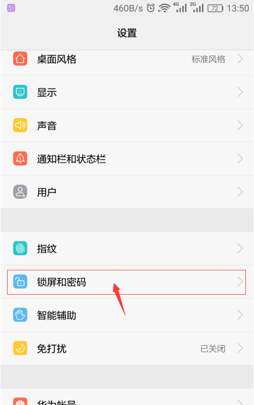 二、进入到手机的设置界面以后,下拉菜单找到”锁屏和密码“一项,然后点击进入。