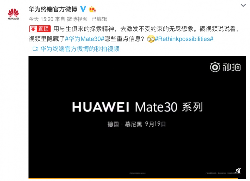 9月9日下午,@华为终端官方微博发布了华为Mate30系列的预热视频。其中有不少有关暗示华为Mate30系列功能的意象。从目前官方暗示的信息来看,华为Mate30系列的配置呼之欲出。下面就让小编带大家提前领略华为Mate30的风采吧!