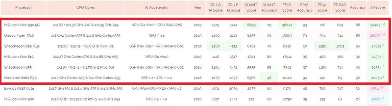日前,AI Benchmark公布了最新的主流芯片多的AI跑分榜单,根据该榜单可知,在前六名中联发科垫底。排行第六的这款联发科芯片并非前段时间刚刚发布的游戏芯片G90T,而是联发科于2018年年底推出的P90,笔者还记得当时这款联发科P90号称AI性能之王。