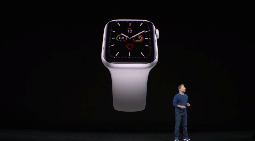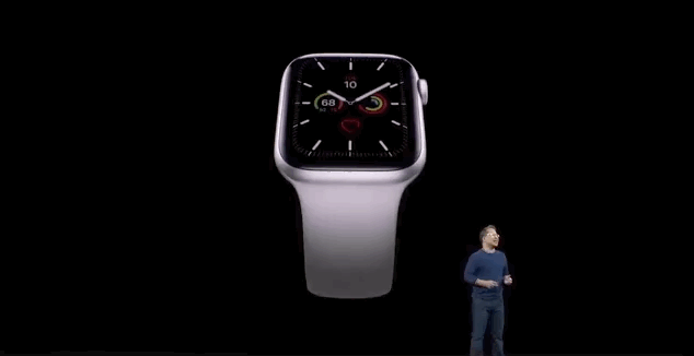 随后,Apple Watch Series 5 正式登场,其配备了新款常亮显示屏,