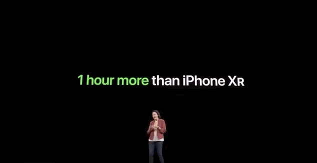 较 iPhone XS 提升了 4 小时,较 iPhone XS Max 提升了 5 小时。