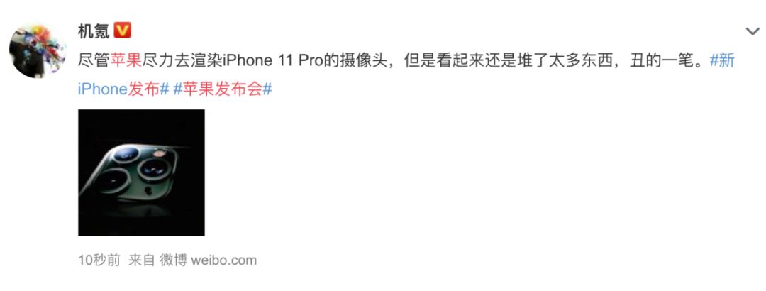 网友几乎一边倒式地吐槽iPhone 11/Pro的外观,