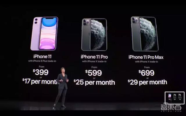 其中iPhone 11 Pro搭载5.8英寸OLED屏幕,售价999美元起。(去年iPhone XS售价999美元起)