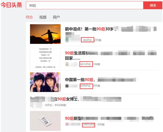 以这个思路入手,我们去头条搜索栏里搜:90后,是不是热门词一搜便知,笔者发现这些文章中标题包含90后大部分都是高评论文,所以按照这个思路去操作,要打造一篇热门文章并不难。