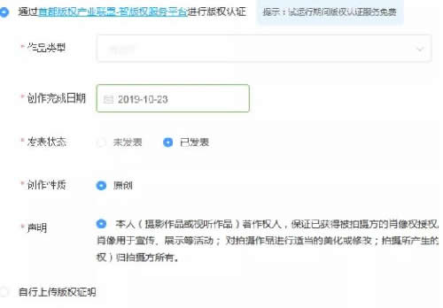 8点击“去认证”,晚上自己商品内容的版权认证