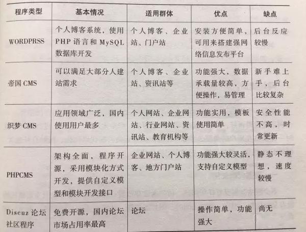 比如:wodepress、z-blog适合于做个人博客、企业网站,操作方快捷简单;DedeCMS操作简单,国内使用人数最多,但安全性不高,帝国CMS操作繁琐,但安全性能高,二者都适合于企业站、资讯站。