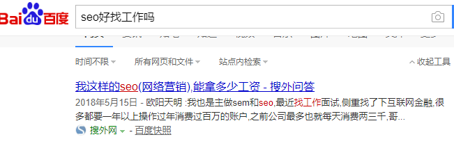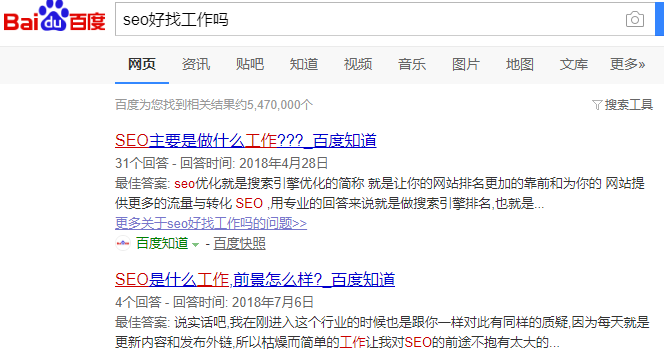 很多小伙伴都在问SEO工作好找吗?SEO工作岗位需求怎么样?学了SEO能不能找到工作?随便逛一些SEO问答平台或者百度搜索SEO找工作就可以看到很多关于这个问题的问题咨询: