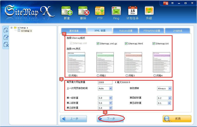 我们可以利用Sitemap X工具每天在凌晨或者早上6点就去抓取索引,然后自动设置FTP上传到网站根目录让搜索引擎蜘蛛爬虫去抓取。