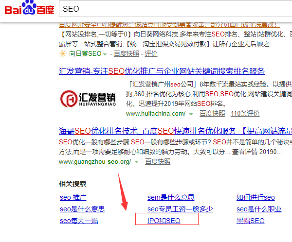 小编个人以为,这其实是一些,做SEO的故意。通过刷相关搜索结果的方法,做上来的。因为搜索IPO和SEO这个关键词的时候,有不少做SEO资讯网站,在其文章的标题中,故意出现了IPO这样的关键词。