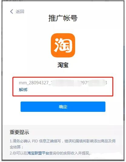 2 完成淘宝账号、京东账号的绑定,绑定pid,是为了追踪返佣。