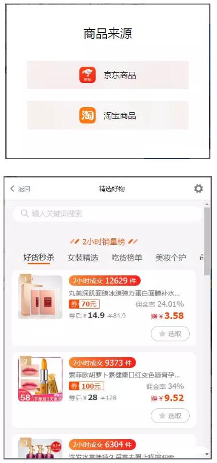 7 选择商品的来源,选中自己要推佣的商品