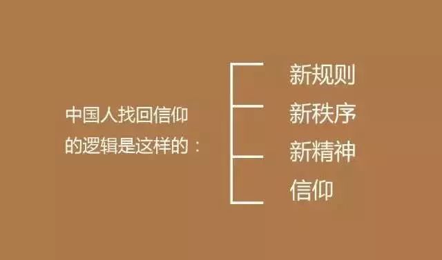 社会正在建立一套完善而合理的秩序,让每个人都能各尽其才,各取所需。在此基础上形成了新秩序,而秩序的运转将产生新的精神,比如契约精神。精神的碰撞激发起内心的向往,一旦我们心有所属,这就是信仰。
