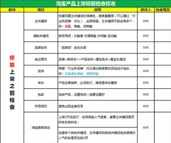 步骤1,在产品上架之前,我们要对自己的产品有个上架的检查标准,如图1-1所示
