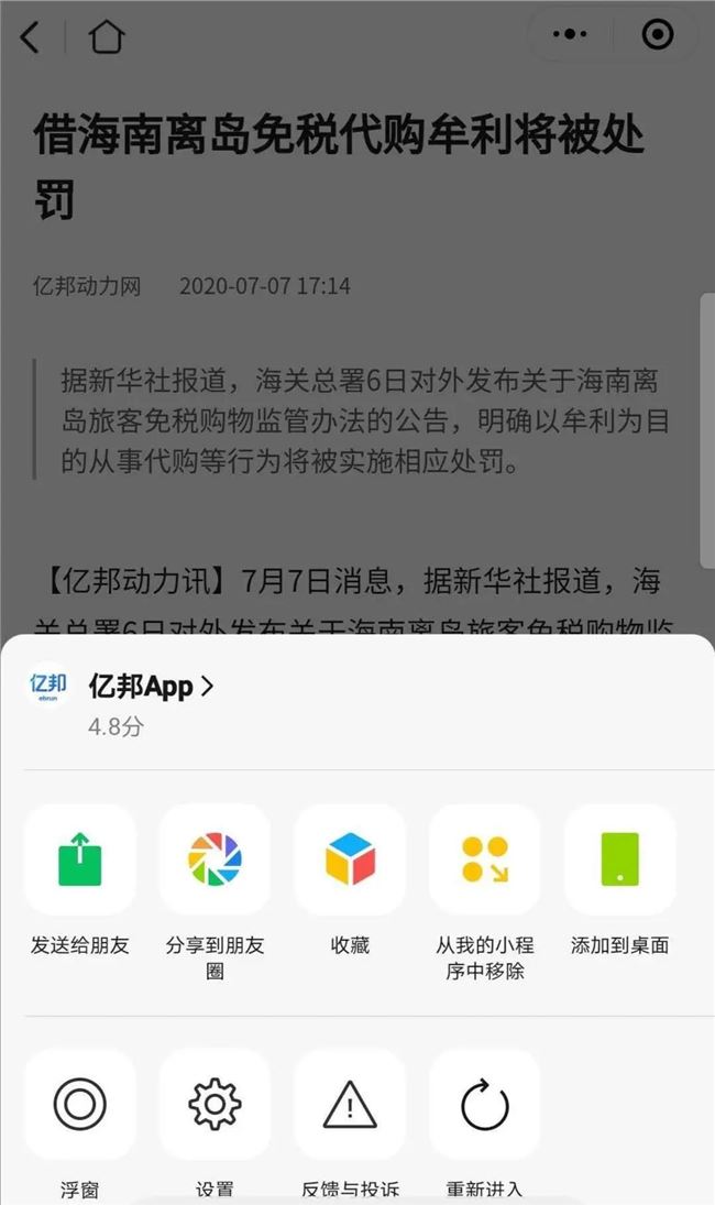 亿邦动力调研发现,已经有不少商家、服务商将微信官方小程序开发文档提供的代码加入到自己的小程序中进行测试,结果发现,可以实现官方文档所说的分享至朋友圈的功能,但当前阶段仅支持安卓版小程序实现该功能。
