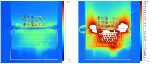 在前文中,我们介绍了戴尔G5 游戏本的强大散热系统,那么对于它的散热效果,相信大家也都非常好奇,那么下面我们就用专业的热成像仪器进行空载与满载的实际测试。