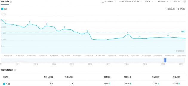 同时,从百度指数来看,在去年疫情爆发初期,民宿相关关键词的搜索指数也是遭到了断崖式的下滑,同比下降近70%,环比下降超过30%。