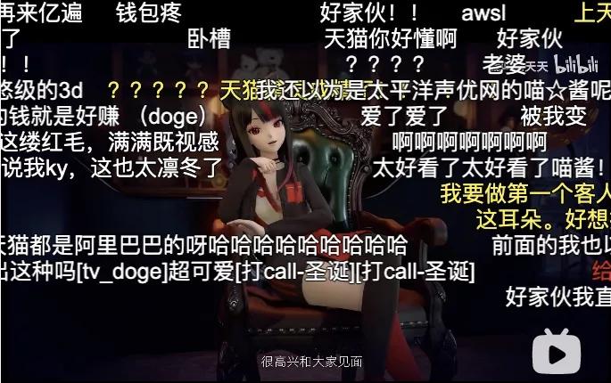 今年8月,天猫冠名的B站线下狂欢BML云 Live ,“猫天天”与四位知名UP主一起表演《买买买》,弹幕戏称:“广告区的顶流来了”。与此同时,“猫天天”首次进入直播间与 UP 主一起推荐神奇好物。