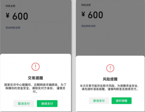 在事中干预阶段,依托决明风控系统,对于系统评估有一定风险的交易,会弹出联合国家反诈中心推出的交易提醒,提醒用户网络诈骗频发,明确支付原由后再选择继续支付。基于交易风险的不同,则可能会触发微信安全助手播放国家反诈中心的语音提醒。或者触发“转账冷静期”, 让用户充分冷静,核实交易信息以确认风险,同时也为反诈中心、银行的劝阻工作争取时间。