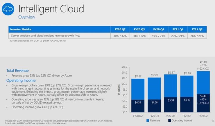 1、智能云(Intelligent Cloud)成为 Q2 营收最高的一项业务,以 64 亿美元占到总营收的 36%。