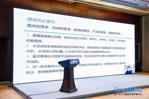 鹏城实验室人工智能中心主任李革的开场致辞表示:依托建设国家大科学装置,鹏城实验室希望以前沿的网络与智能技术赋能国家重大产业,尤其希望在医疗健康行业,秉持习主席提出的“创新”思想,以开源开放的模式建立助力智慧医疗发展的AI赋能平台。抱着这样的初心,鹏城实验室智慧医疗团队完成的素问系统第一个版本在此次大会正式发布,并寄希望于素问系统成为各界顶尖力量的连接,与各位同道一起推动智慧医疗的发展。同时,希望到场的嘉宾们能从国家发展战略的角度、医疗应用生态的角度、技术发展的角度给予素问系统更多的帮助,使其成长为加速形成未来智慧医疗生态的人工智能创新平台。