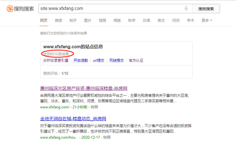 搜狗站长平台显示的网站索引量和通过site查询结果相差的太大了,不是都说相差不会太大的吗?这是怎么回事,希望专业的老师指教下,感谢!域名:www.xfxfang.com