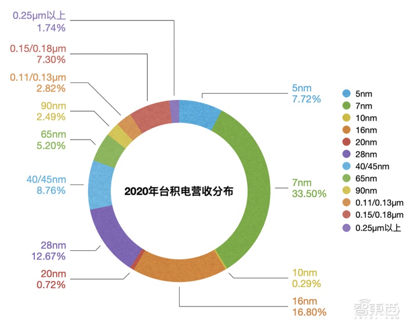 2020 年台积电营收贡献最高的制程节点是 7nm 制程,占比高达 33.5%。