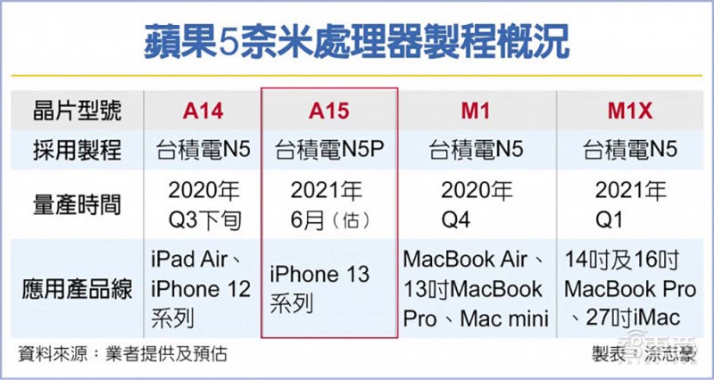 ▲ 苹果 5nm 处理器制程概况(来源:台湾工商时报)
