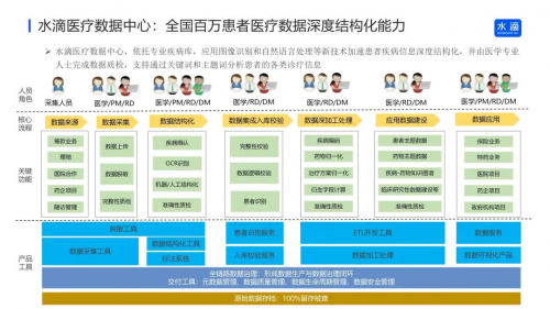 基于每年近百万个求助项目的数据积累和沉淀,水滴研发团队今年搭建了水滴医疗知识图谱,并于今年7月份正式成立了水滴医疗数据中心,依托专业疾病库,应用OCR和NLP等技术加速患者疾病信息深度结构化,并由医学专业人士完成数据质检,支持通过关键词和主题词分析患者的各类诊疗信息。